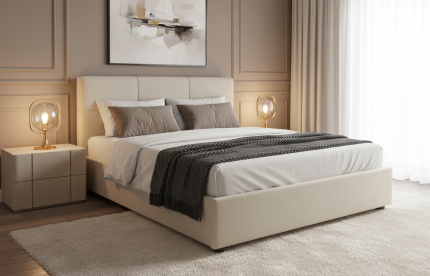 Lifting mechanism, Gas dampers, Metal frame with grilles, Built-in laundry box, Metal coloured legs.