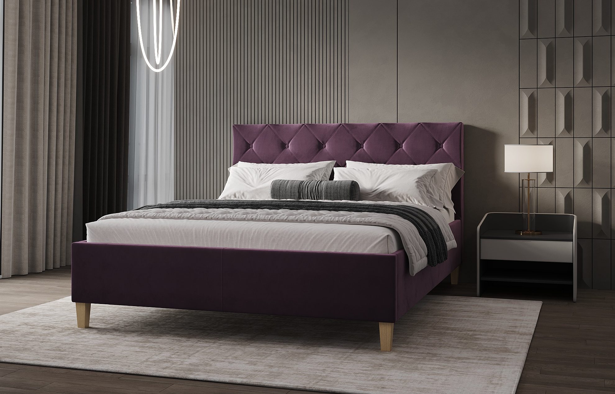 You can design your bed by choosing the colour of the fabric and the variant of the bed leg in our showroom in Riga, tel +371 26004302.